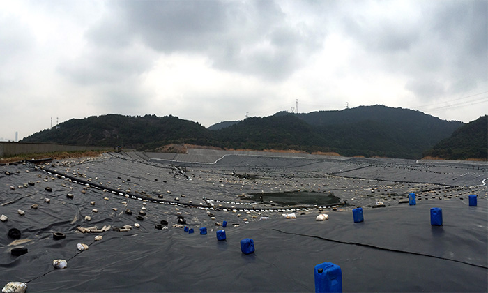 建設規模:寧波大岙垃圾填埋場占地面積約66公頃,庫容1,016萬m3,服務期25年,每日可接納垃圾500噸、灰50噸、渣400噸。本項目施工范圍主要是垃圾填埋場約80,000㎡垃圾面的密封工程